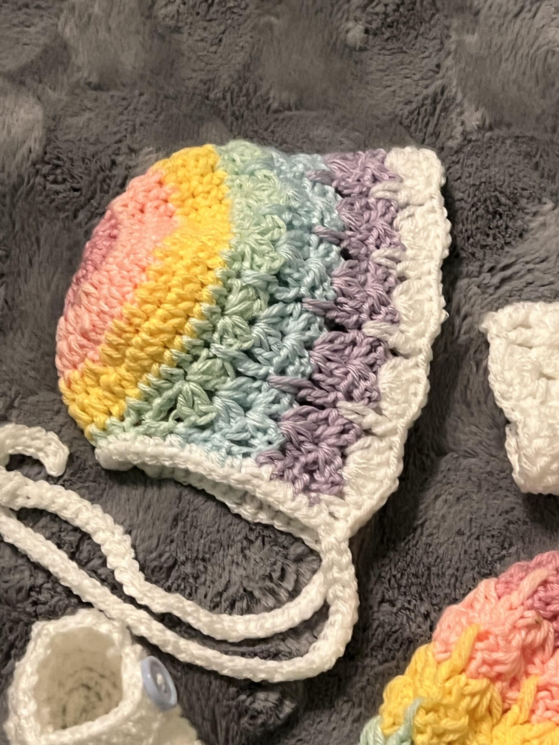 I use acrylic yarn in the following brands, Bernat Baby, I Love This Yarn, Yarn Bee, Baby Bee, & Paintbox Yarns. Each item is 100% handmade by me, in a smoke free home.